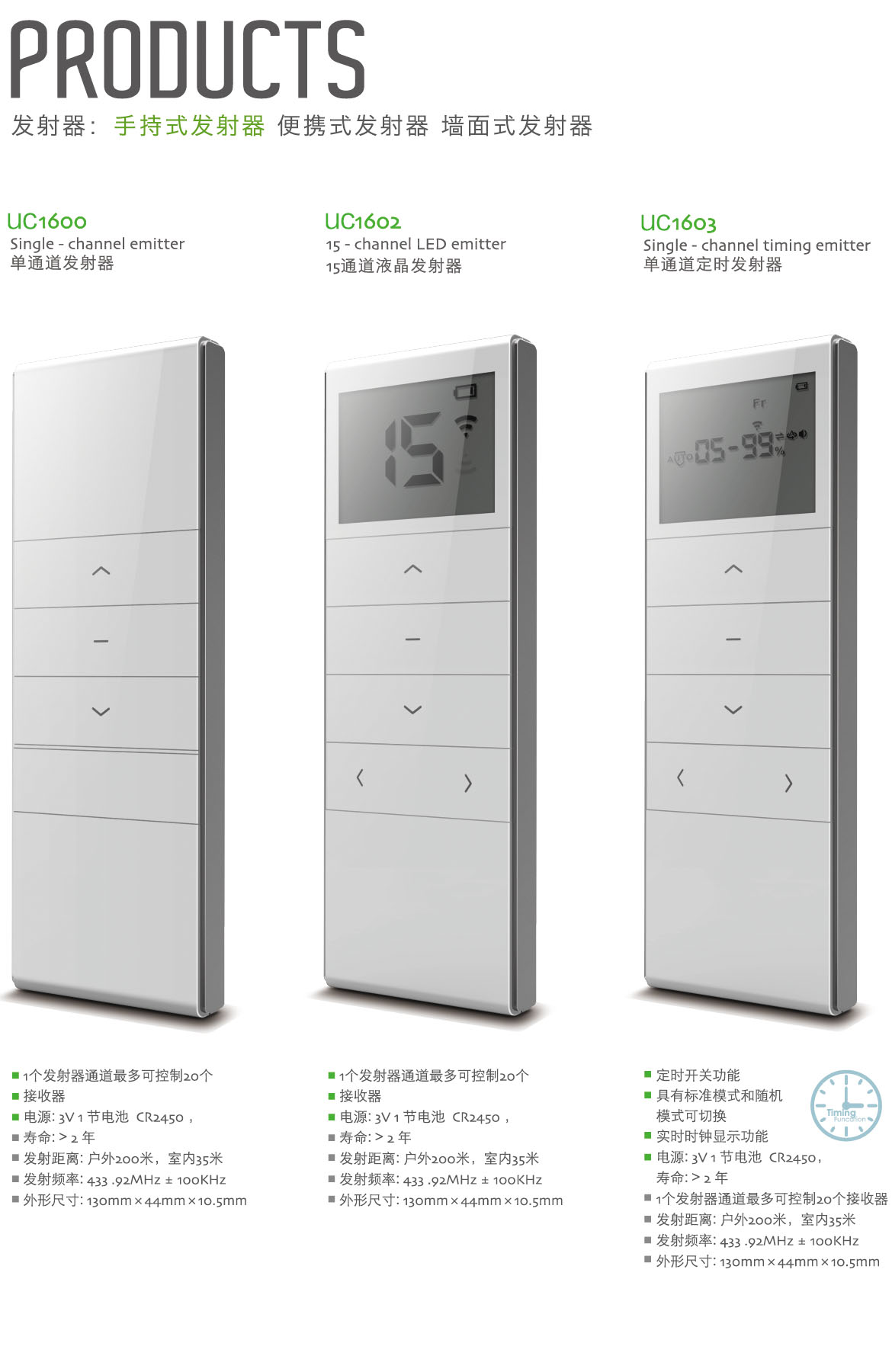 Sing-channel emitter / 单通道发射器 15-Sing-channel LED emitter / 15通道液晶发射器