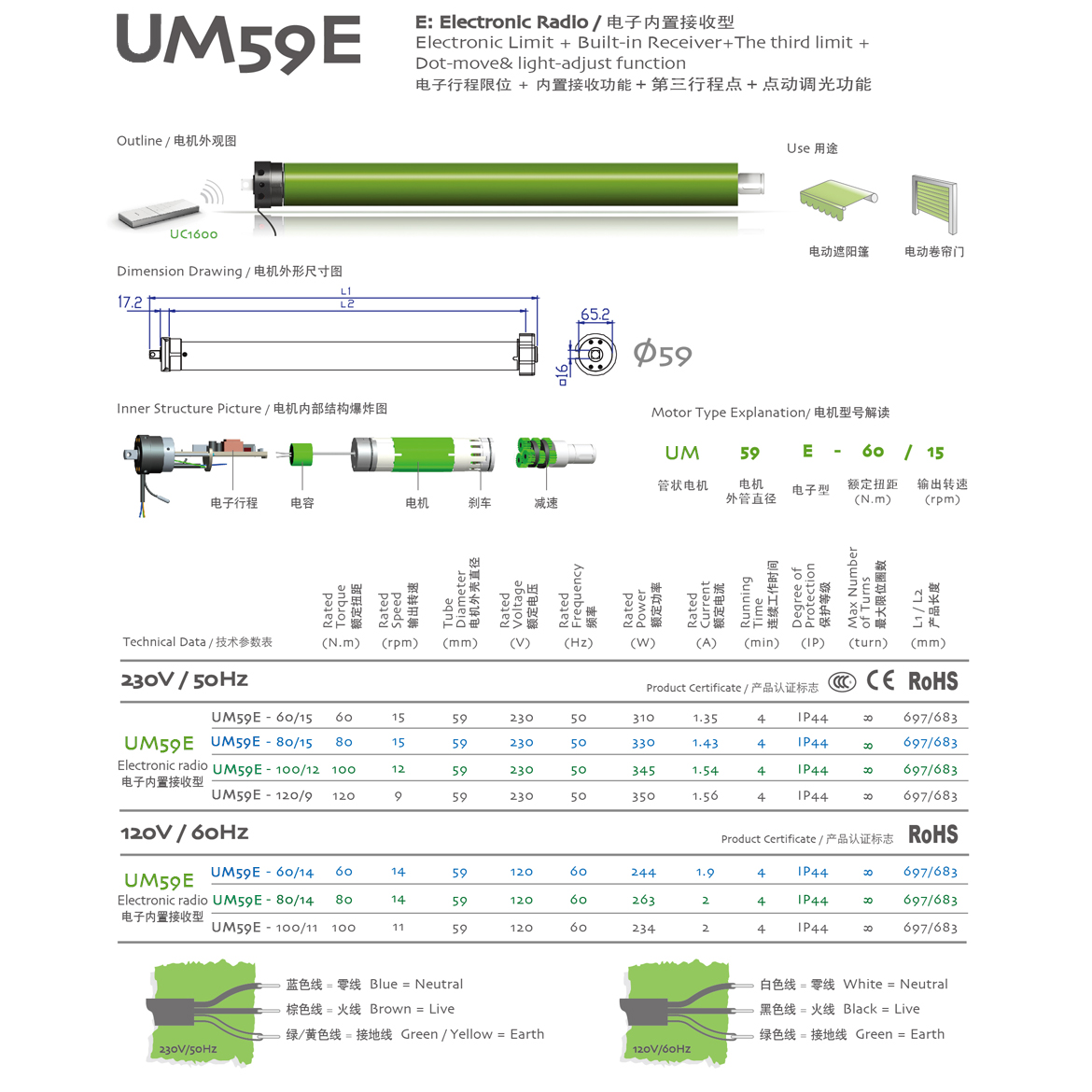E:Electronic Radio/电子内置接收型 电子行程限位+内置接收器+点动调光功能+第三行程点